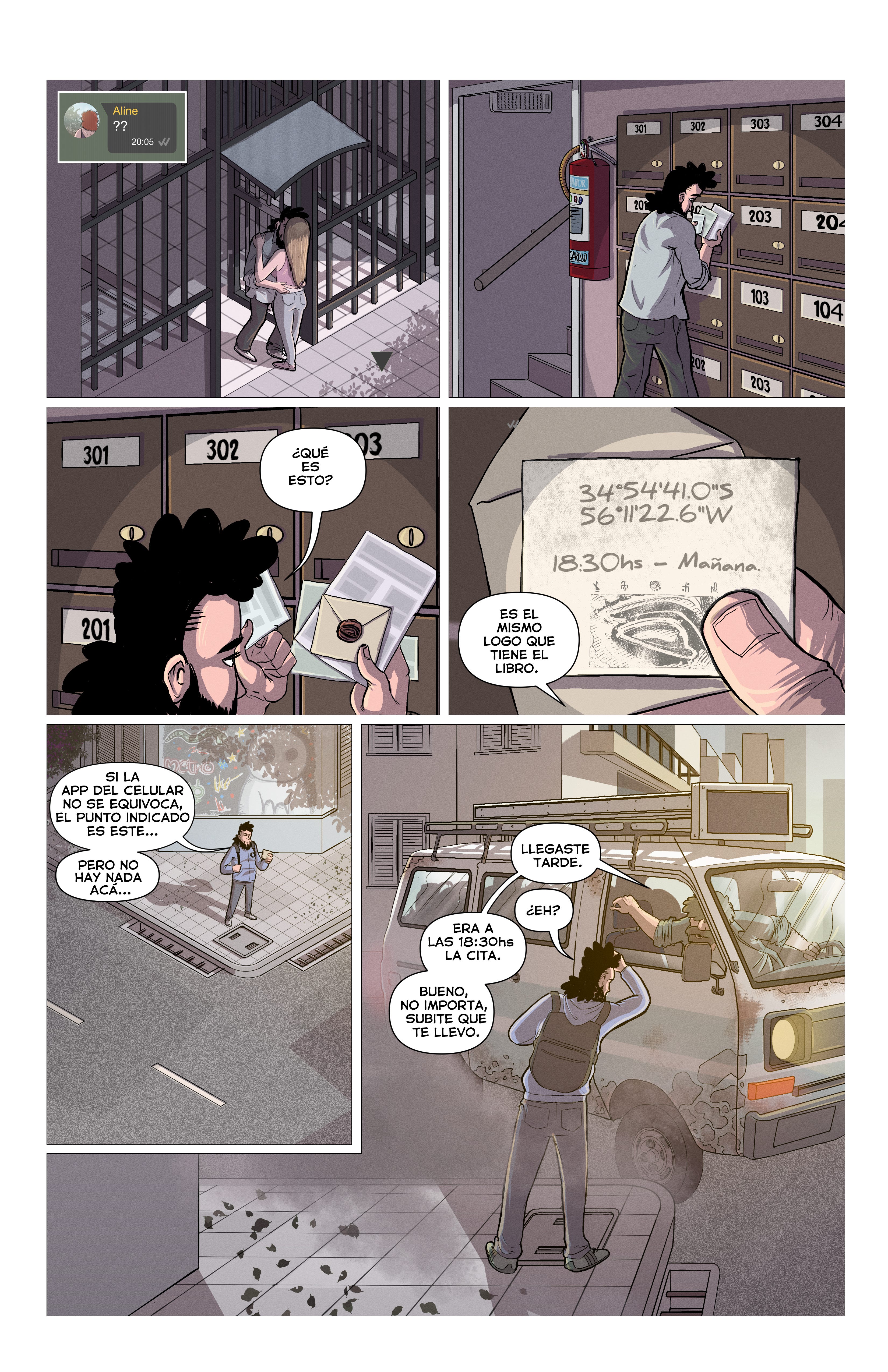 Federico Taibo. Nacido y criado en Montevideo (Uruguay) en 1980. Comenzó a trabajar en el mundo del cómic en 2008, publicando sus propios cómics web. Creó el sello Gas Comics, junto con otros compañeros artistas, donde publicó el fanzine GAS3K durante casi 10 años, y tres libros: las novelas gráficas Grimorio del Plata y Crononautas, y My Life Without a Jetpack, una recopilación de tiras autobiográficas para internet. Como colorista ha trabajado en Hindsight, un cómic de misterio y viajes en el tiempo publicado en Virus Comics, el sello editorial de la revista Heavy Metal.